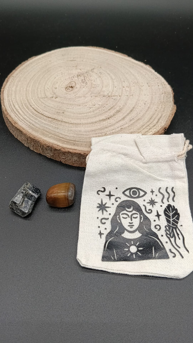 - Bolsillo derecho: proyección y defensa activa (ojo de tigre, hematite).