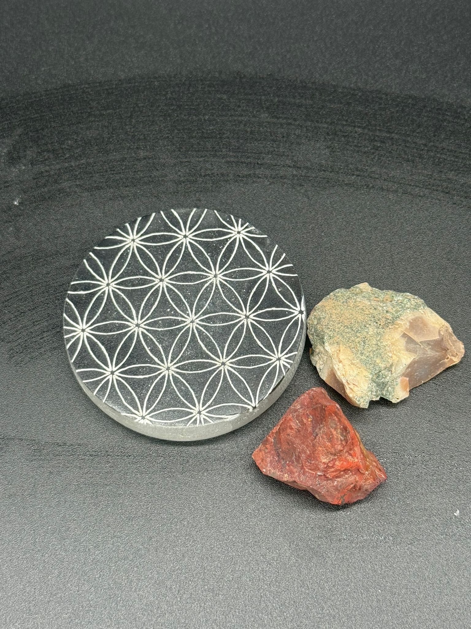 Placa Selenita Flor de la Vida Oscura Pequeña