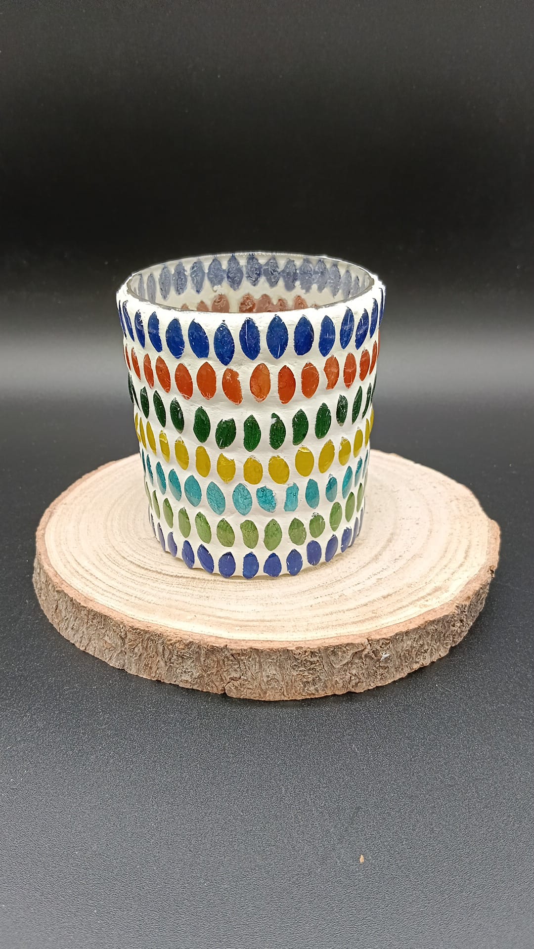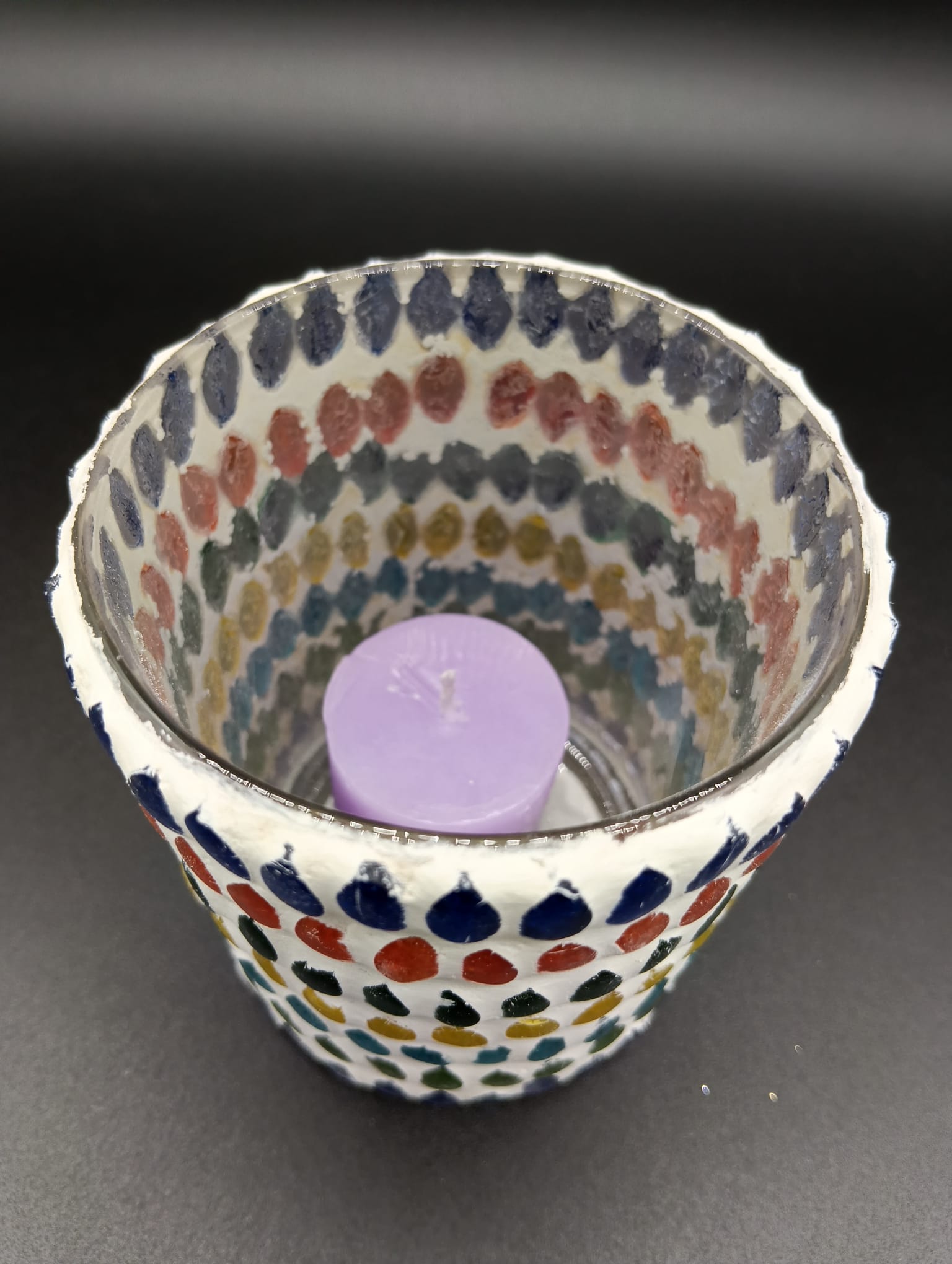 Porta Vela en Forma de Vaso con Gotas de Colores