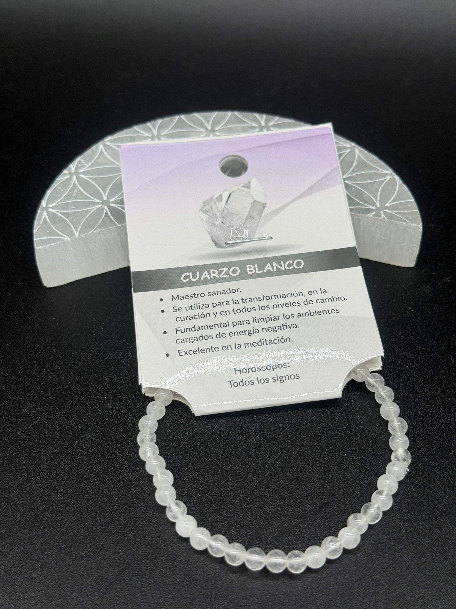 El cuarzo blanco es conocido como la piedra de la claridad, la energía pura y la armonía. Esta pulsera, elaborada con cuentas naturales de cuarzo blanco de 4 mm, irradia una vibración suave que ayuda a equilibrar las emociones, potenciar la concentración y limpiar energías negativas.