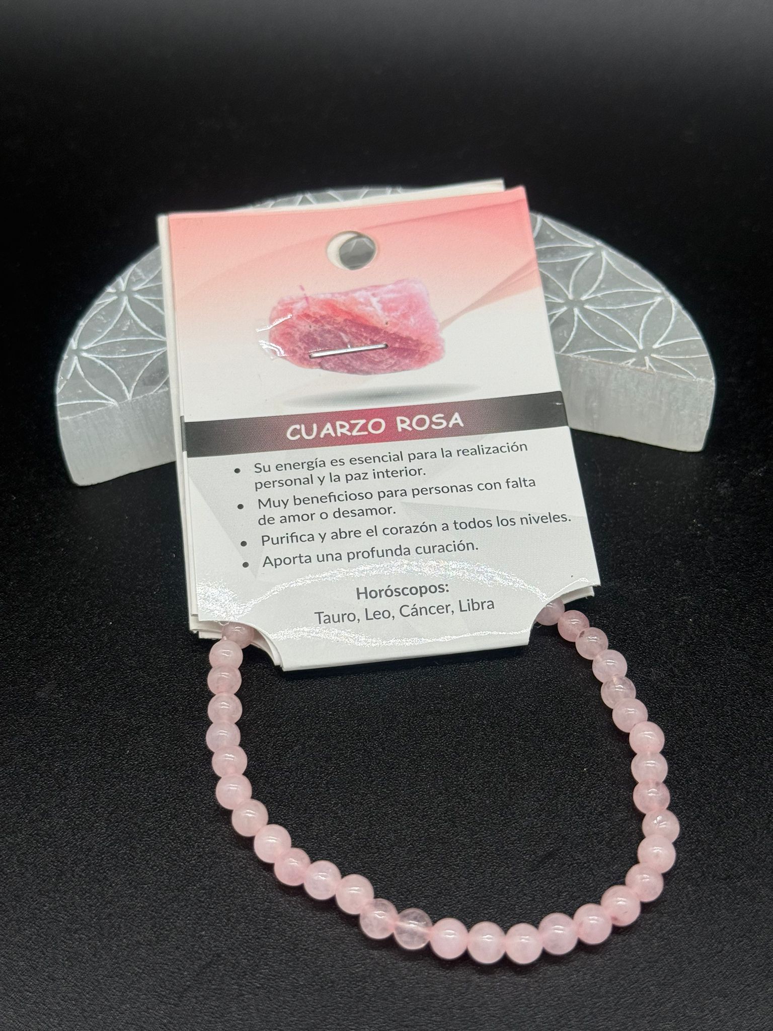 Pulsera de Cuarzo Rosa Natural de 4 mm