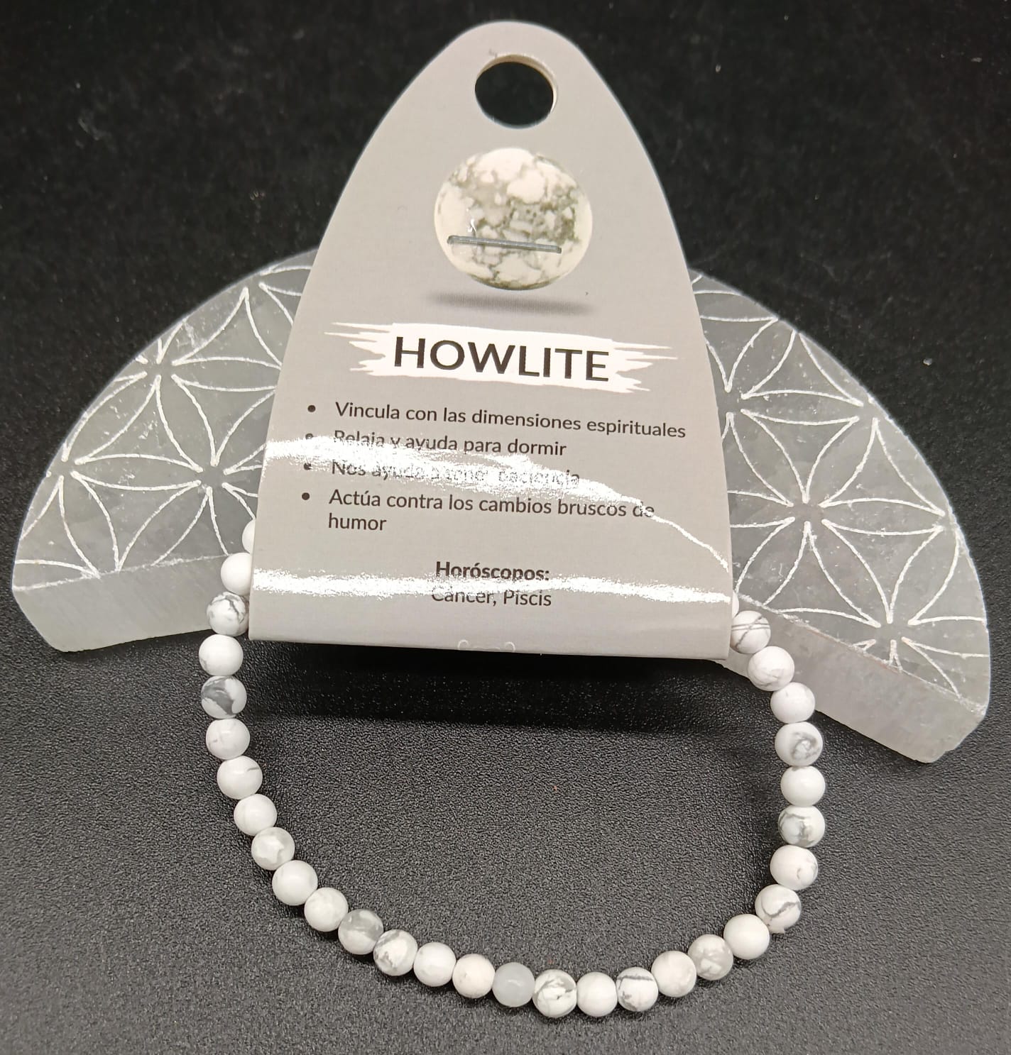Llevar una pulsera de howlita permite mantener su vibración equilibrante cerca del cuerpo durante todo el día, apoyando procesos de armonización emocional y espiritual de forma constante y natural.