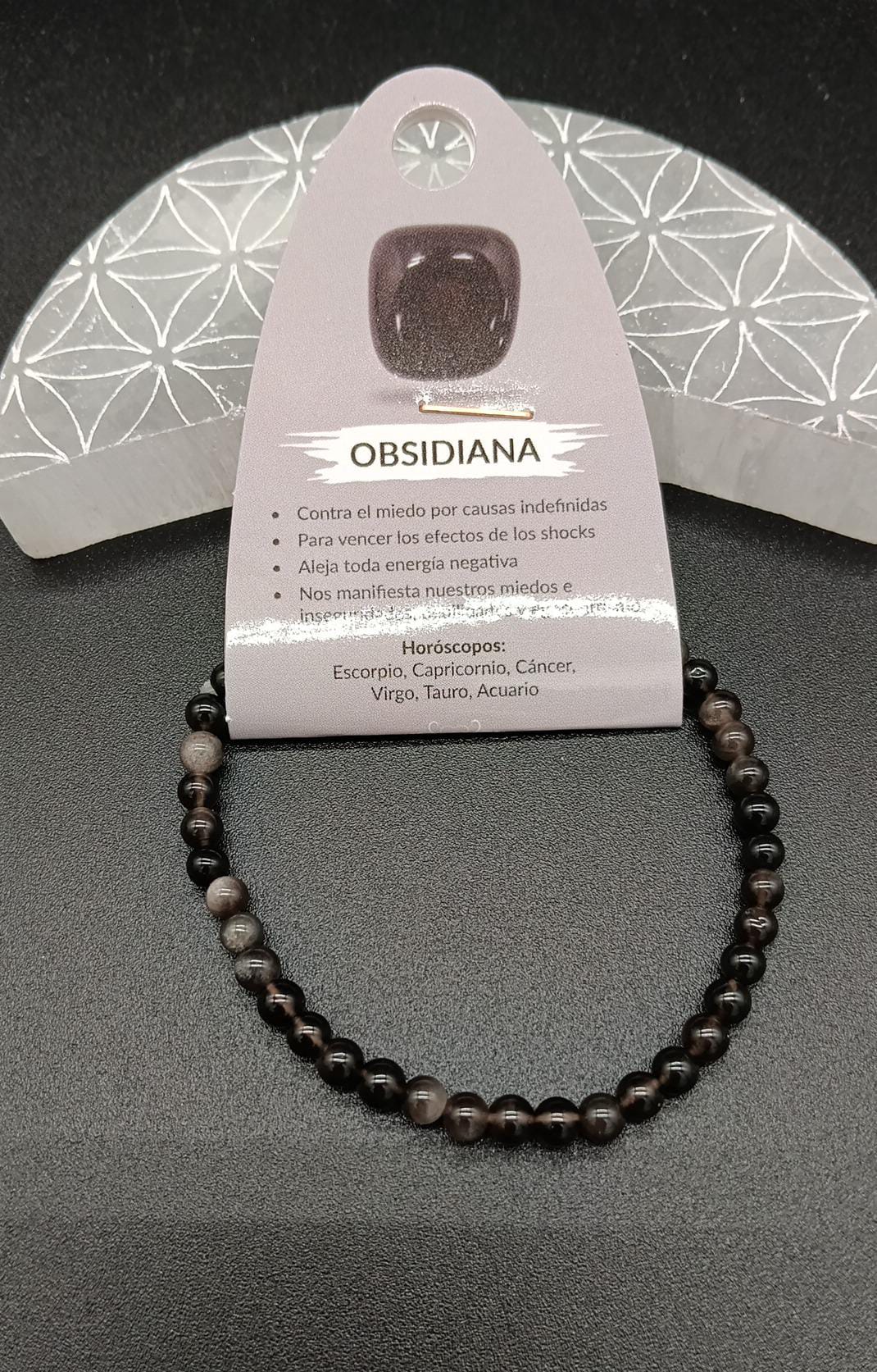 Esta pulsera de Obsidiana, elaborada con cuentas de 4 a 5 mm, es un amuleto de protección profunda y transformación interior. La Obsidiana es una piedra volcánica de gran potencia energética, reconocida por su capacidad para revelar verdades ocultas, cortar energías negativas y purificar el campo áurico con firmeza y precisión.