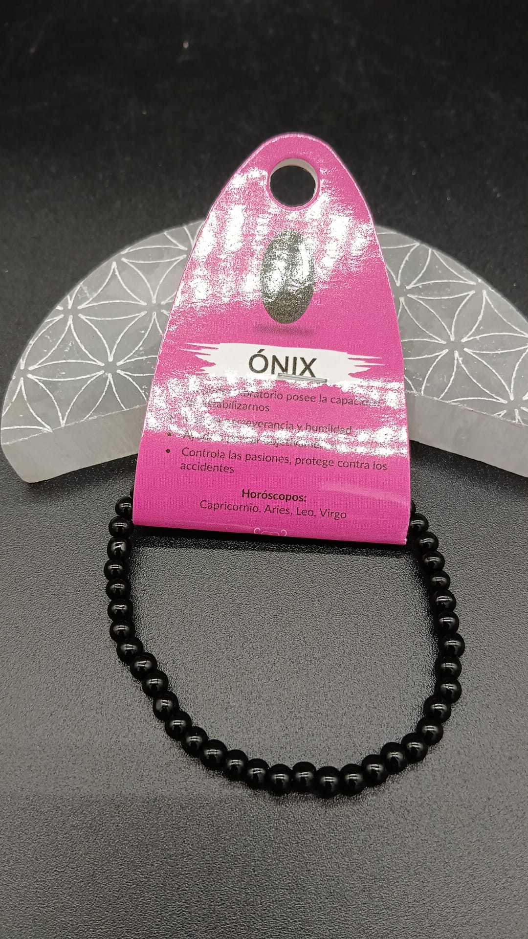 Esta pulsera de Ónix, confeccionada con cuentas de 4 a 5 mm, es un poderoso símbolo de fuerza interior y protección energética. El Ónix es una de las piedras más reconocidas por su capacidad para absorber y transmutar energías densas, ayudando a mantener un campo áurico firme, estable y resguardado.