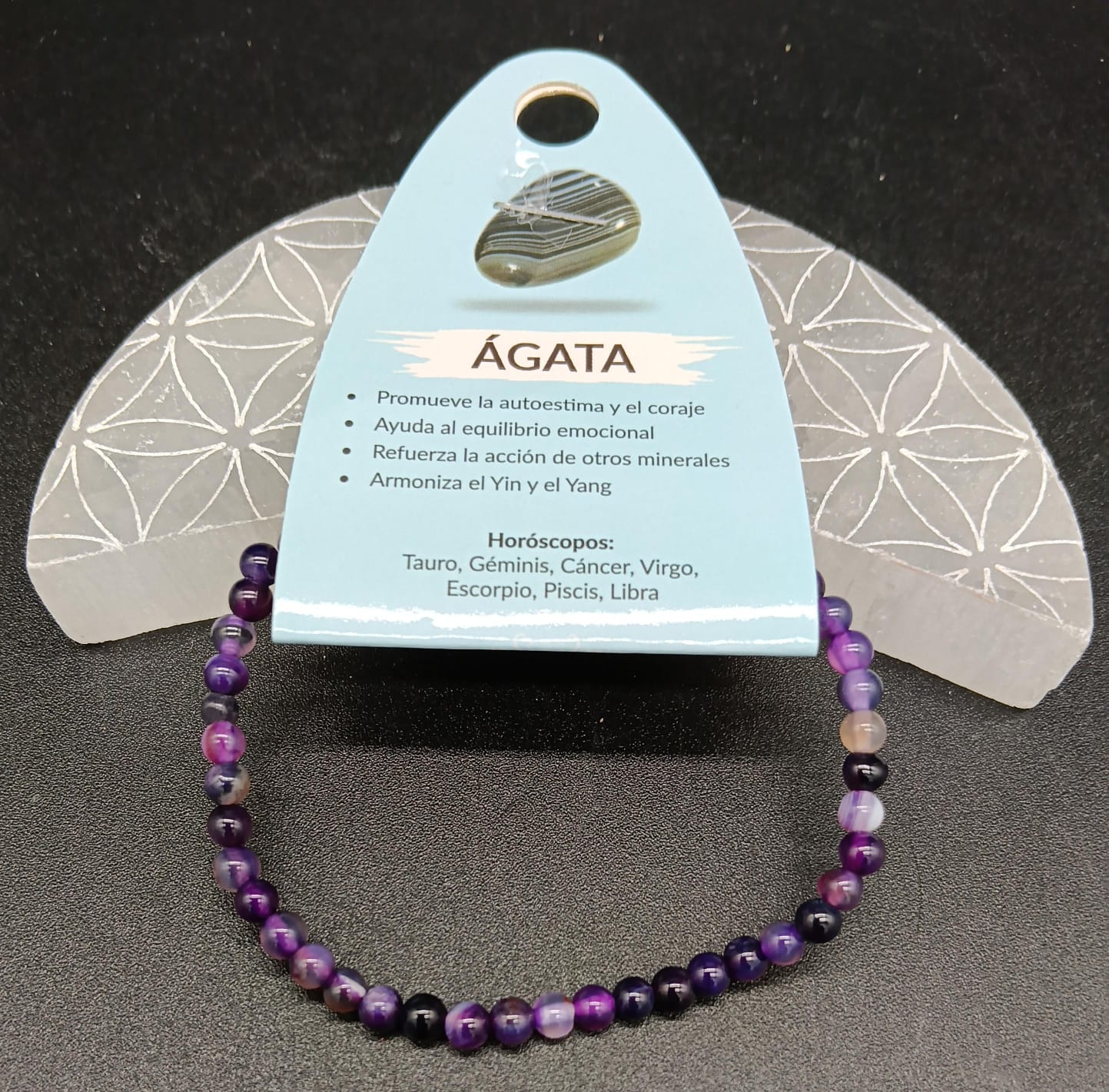 La pulsera de ágata en tonos morados es un accesorio energético asociado a la protección, el equilibrio emocional y la estabilidad interior. Esta piedra es reconocida por su capacidad para armonizar la energía, aportando seguridad, calma y fortaleza en momentos de cambio o tensión emocional.
