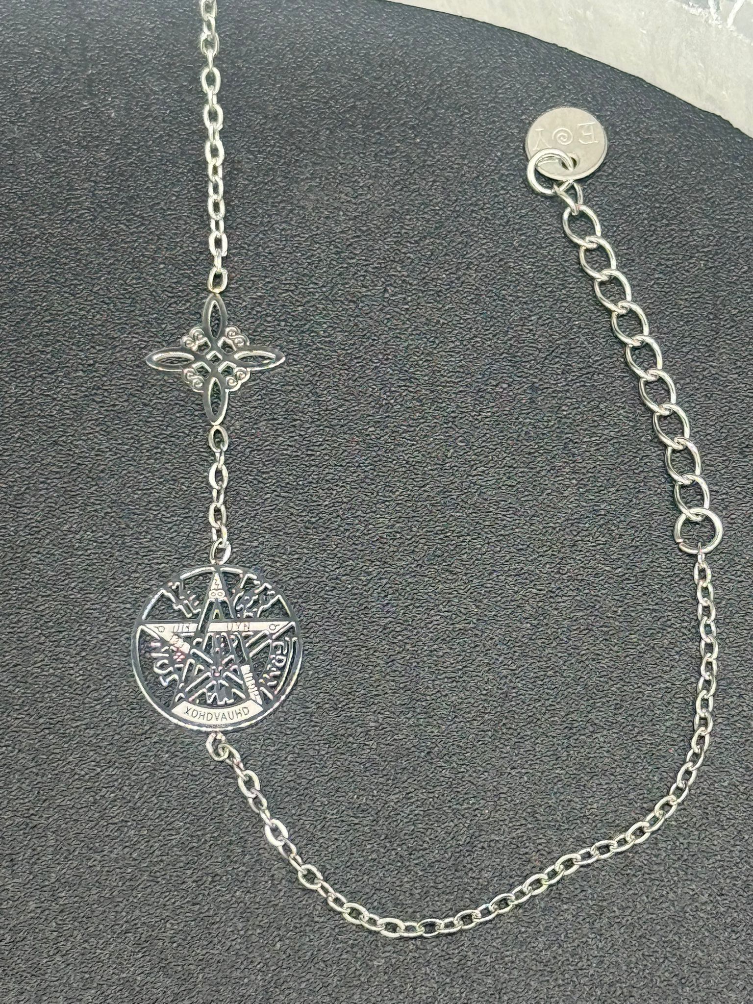 Esta pulsera reúne dos de los símbolos de protección más poderosos del mundo esotérico: el Nudo de Bruja y el Tetragramatón, formando un amuleto dual que actúa como un escudo energético constante, ideal para quienes buscan resguardo espiritual, equilibrio y defensa frente a cualquier tipo de energía negativa.
