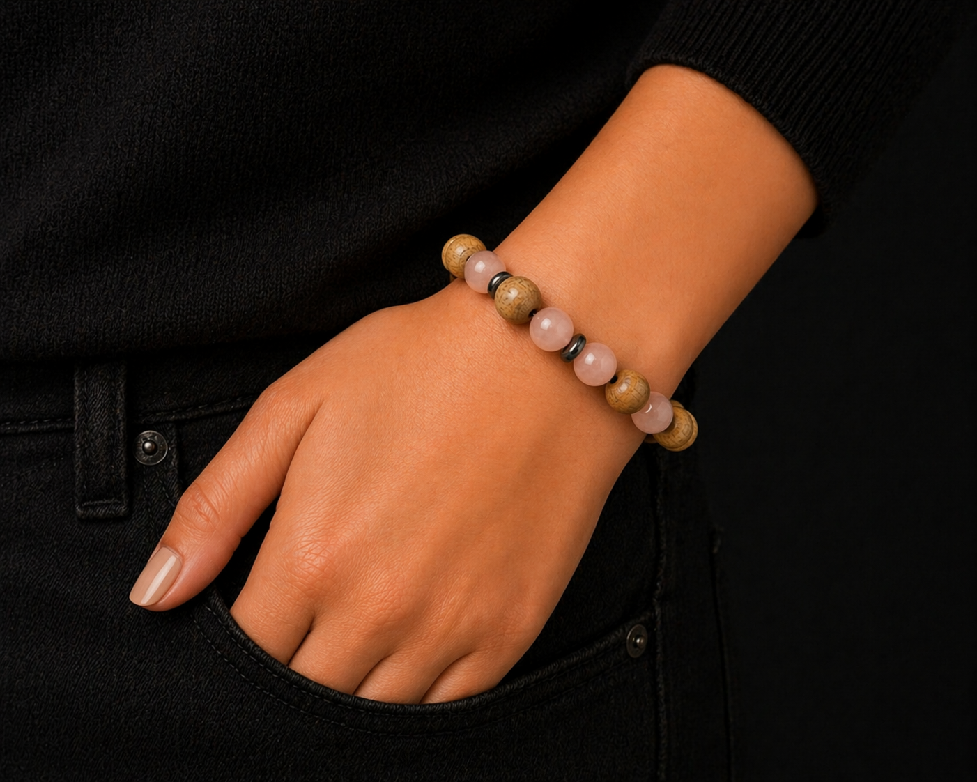 Juntas, estas piedras crean una pulsera perfecta para rituales de amor propio, meditación o para llevar contigo como amuleto diario de protección y armonía.