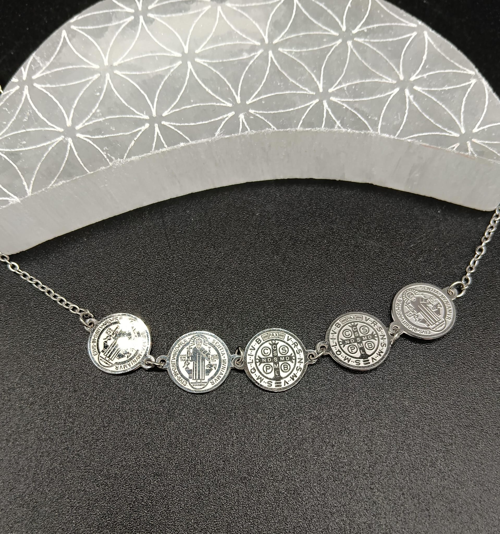 Esta pulsera de acero con medallas de San Benito es una poderosa pieza de protección espiritual y resguardo energético. La medalla de San Benito es uno de los símbolos más reconocidos dentro de la tradición espiritual por su función como escudo contra energías negativas, influencias externas y desequilibrios energéticos.
