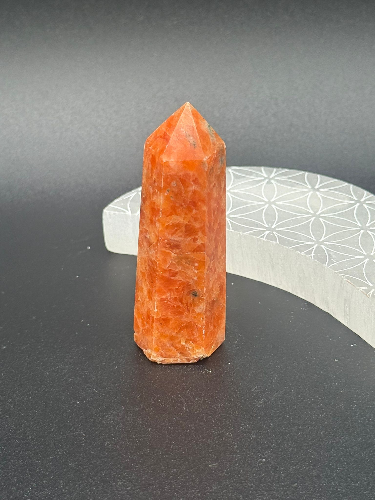 Material: Calcita naranja natural tallada en forma de punta