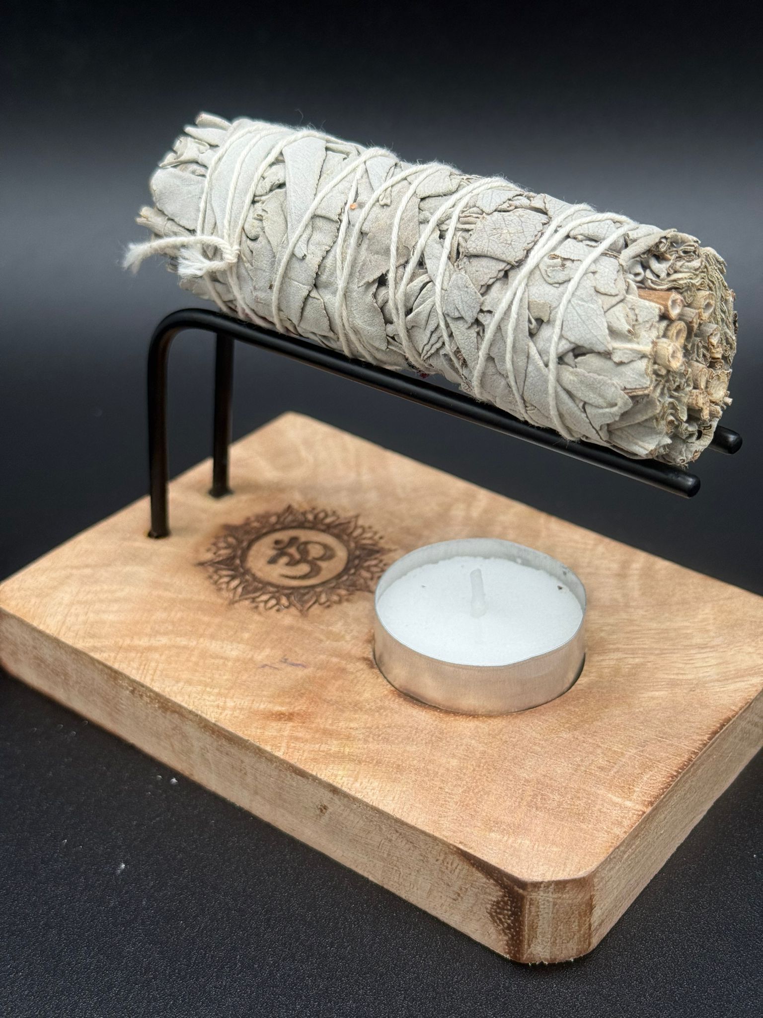 Quemador Palo Santo/Sahumerios símbolo Ohm 13x9cm
