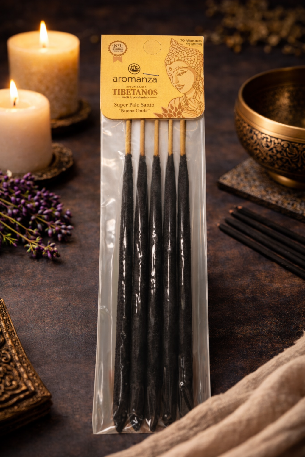 El Incienso Tibetano de Súper Palo Santo es ideal para llenar el ambiente de Buena Onda.