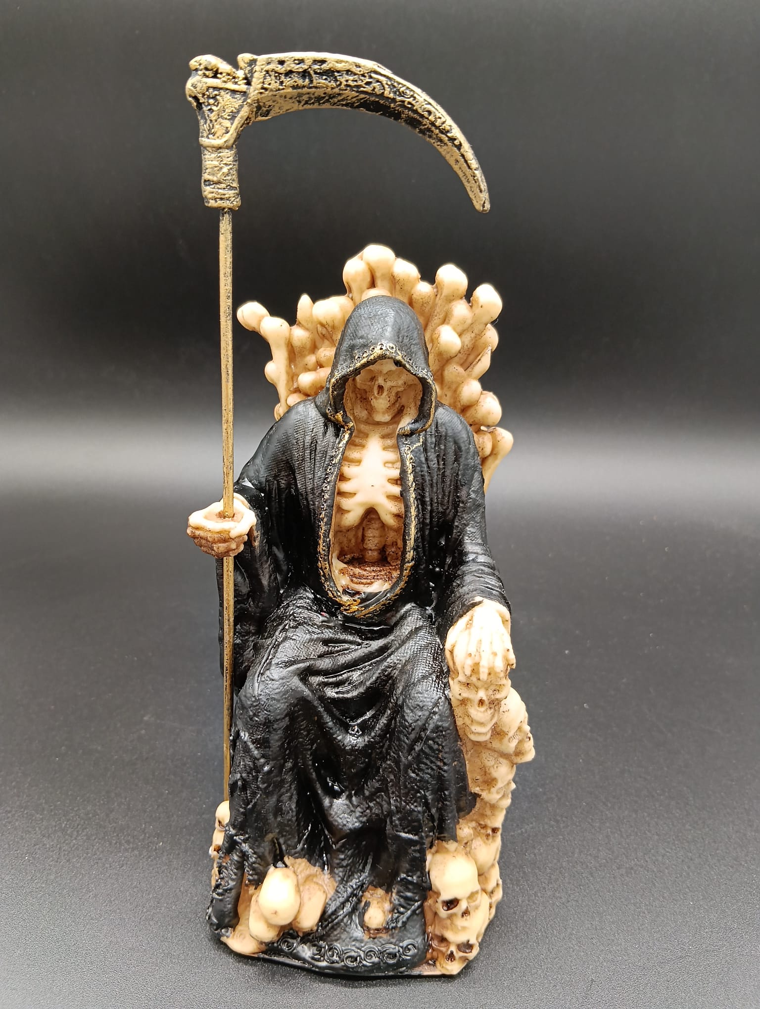 Santa Muerte Negra Sentada en Trono 17cm