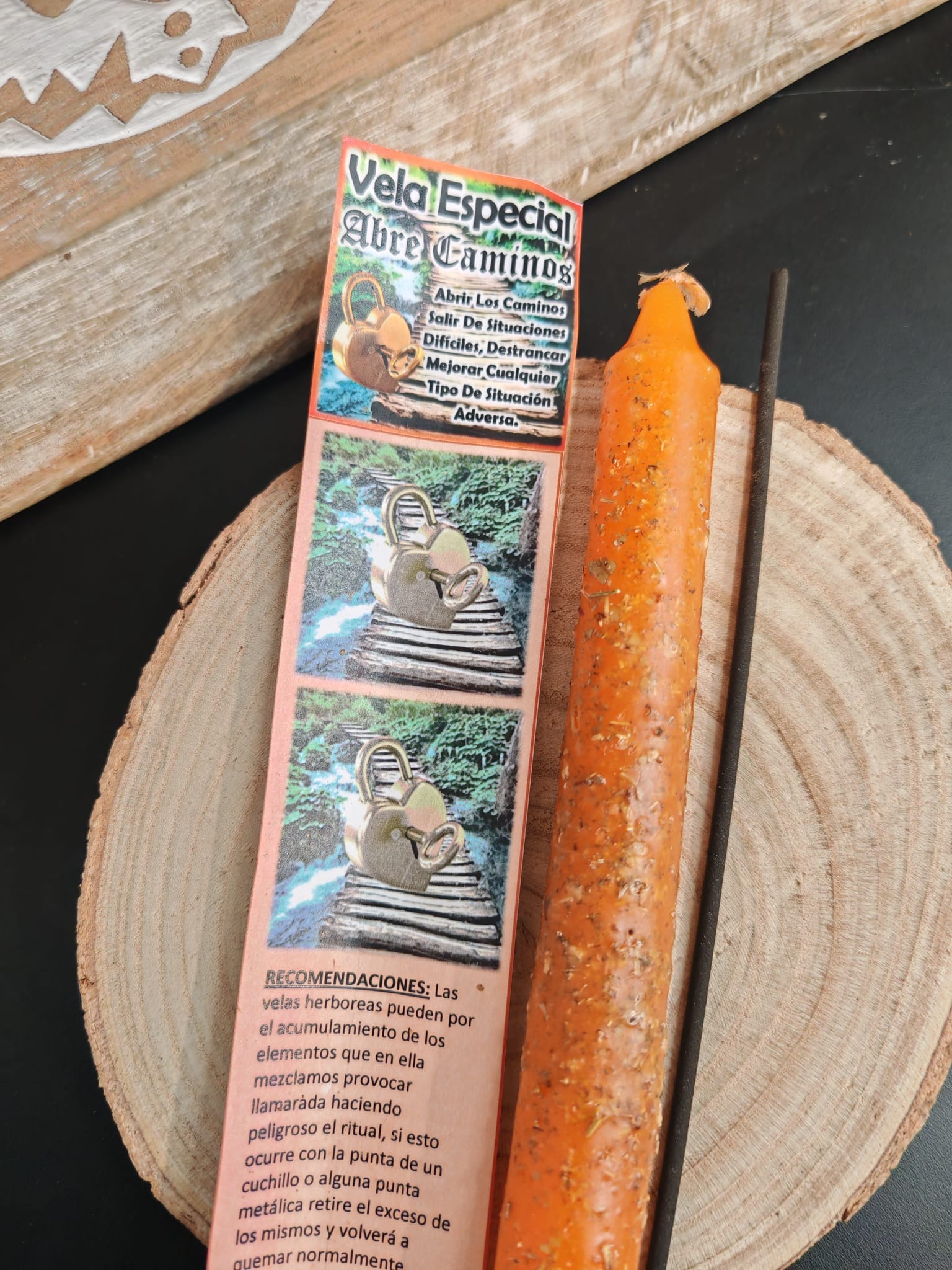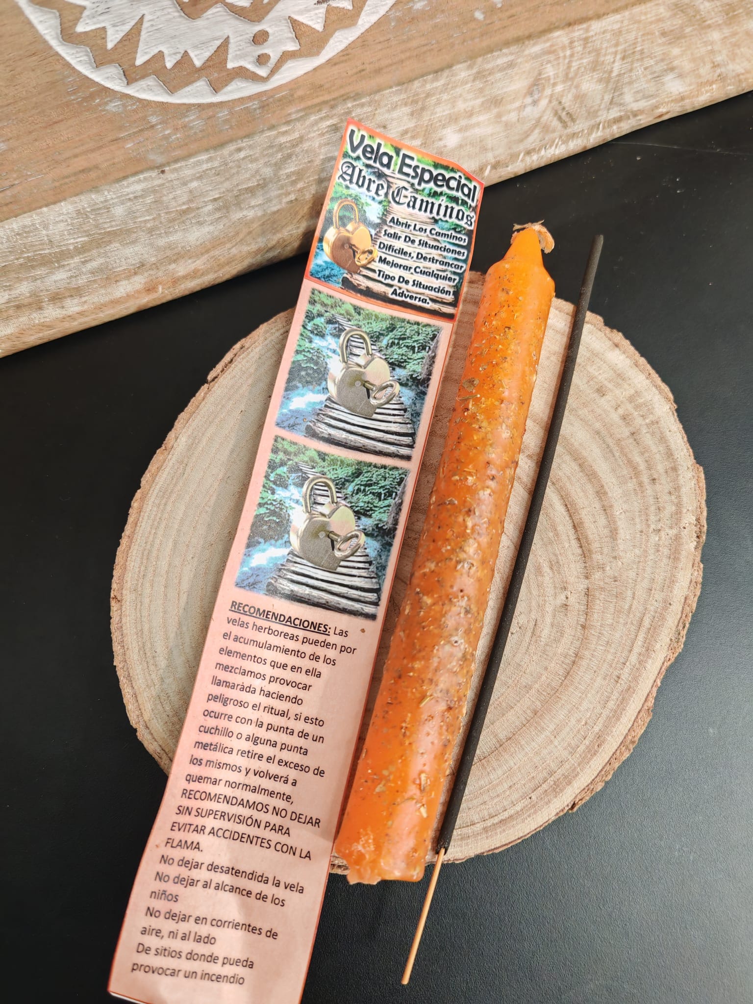 La vela especial Abre Caminos de color naranja está elaborada para impulsar el movimiento, la motivación y la atracción de nuevas oportunidades. El tono naranja, asociado a la creatividad, la energía vital y la apertura de caminos rápidos y dinámicos, potencia su acción liberadora y transformadora.