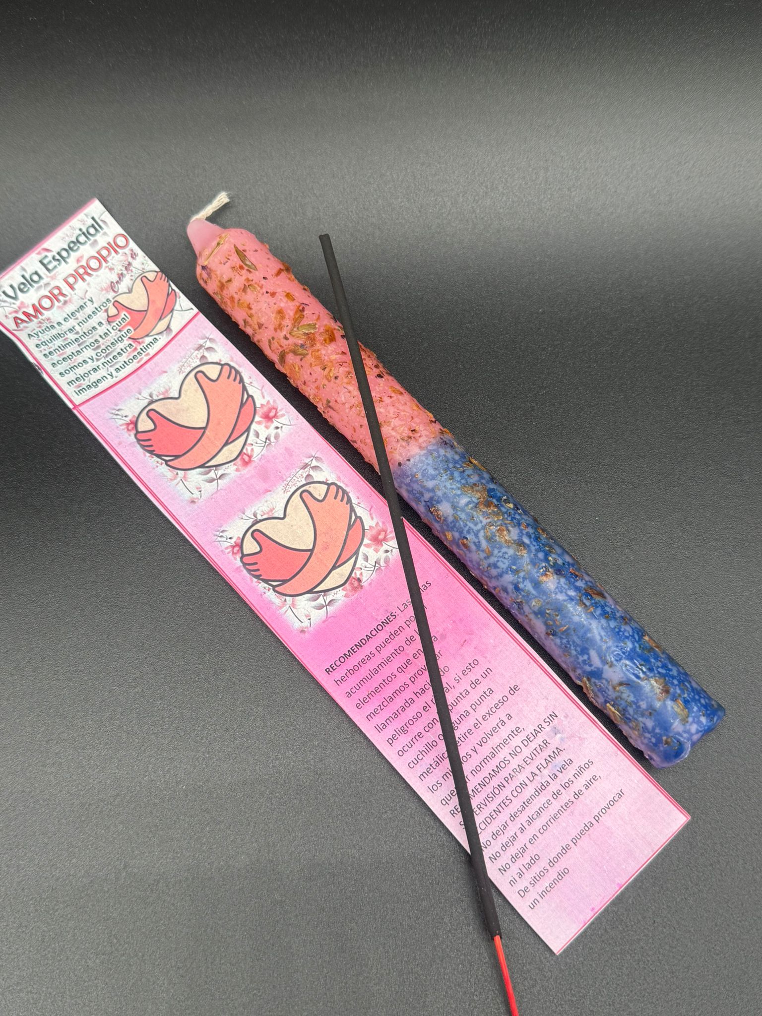 – Vela ritualizada con ingredientes energéticos para el amor propio