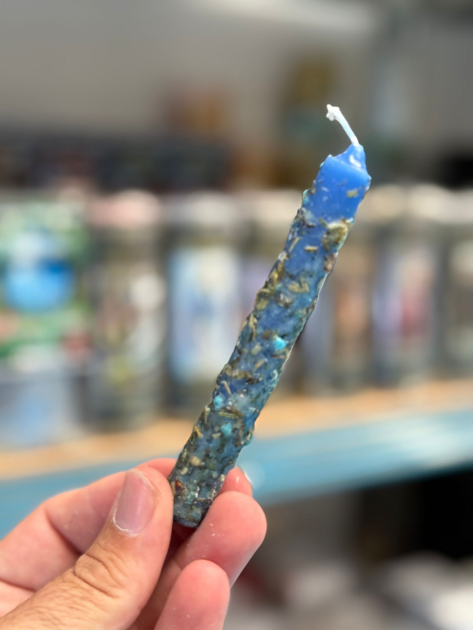 Velas de 11cm de sal. Ritualizadas con diferentes hierbas y esencias para su labor. Tranquilidad, sosiego, calma y estabilidad.
