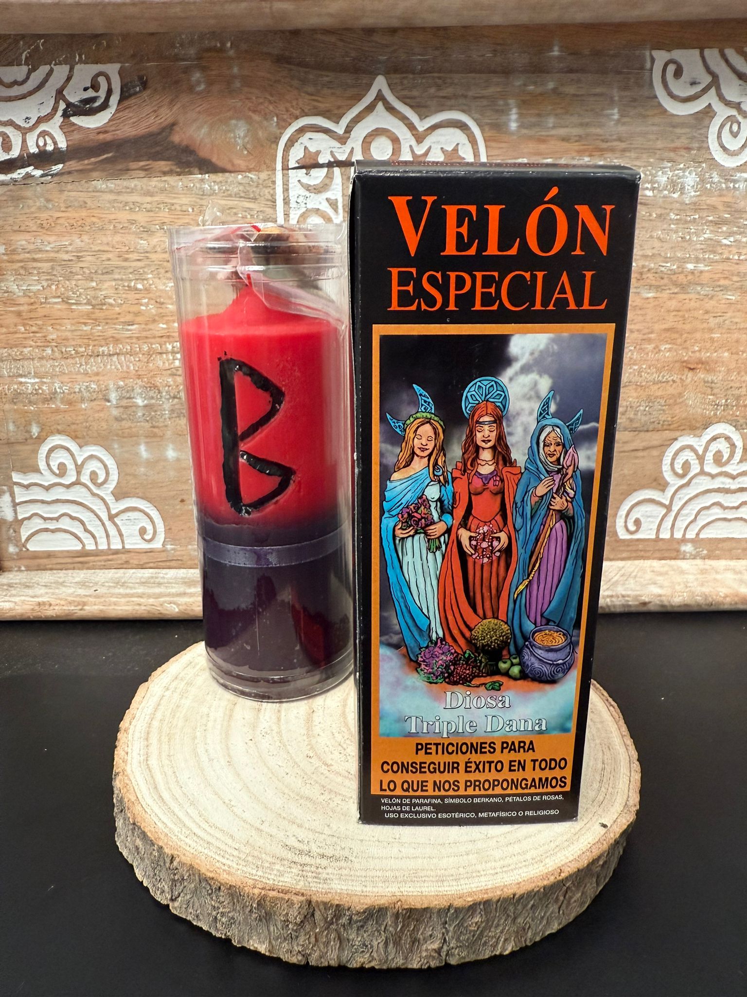 Este velón ha sido consagrado en nombre de la Triple Diosa Dana, madre ancestral de la sabiduría, la abundancia y la magia. Representando las tres fases de la luna y de la mujer —doncella, madre y anciana— este velón canaliza su fuerza para ayudarte a manifestar el éxito en todos tus caminos.